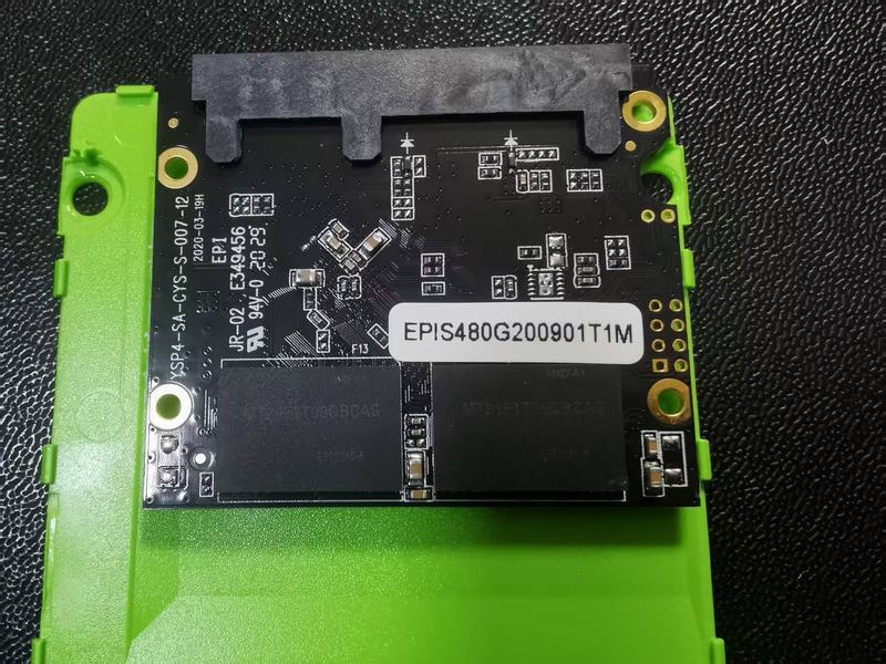 颗粒方面,是4颗120G单颗粒组成的,颗粒型号为MT29F1T08GBCAG